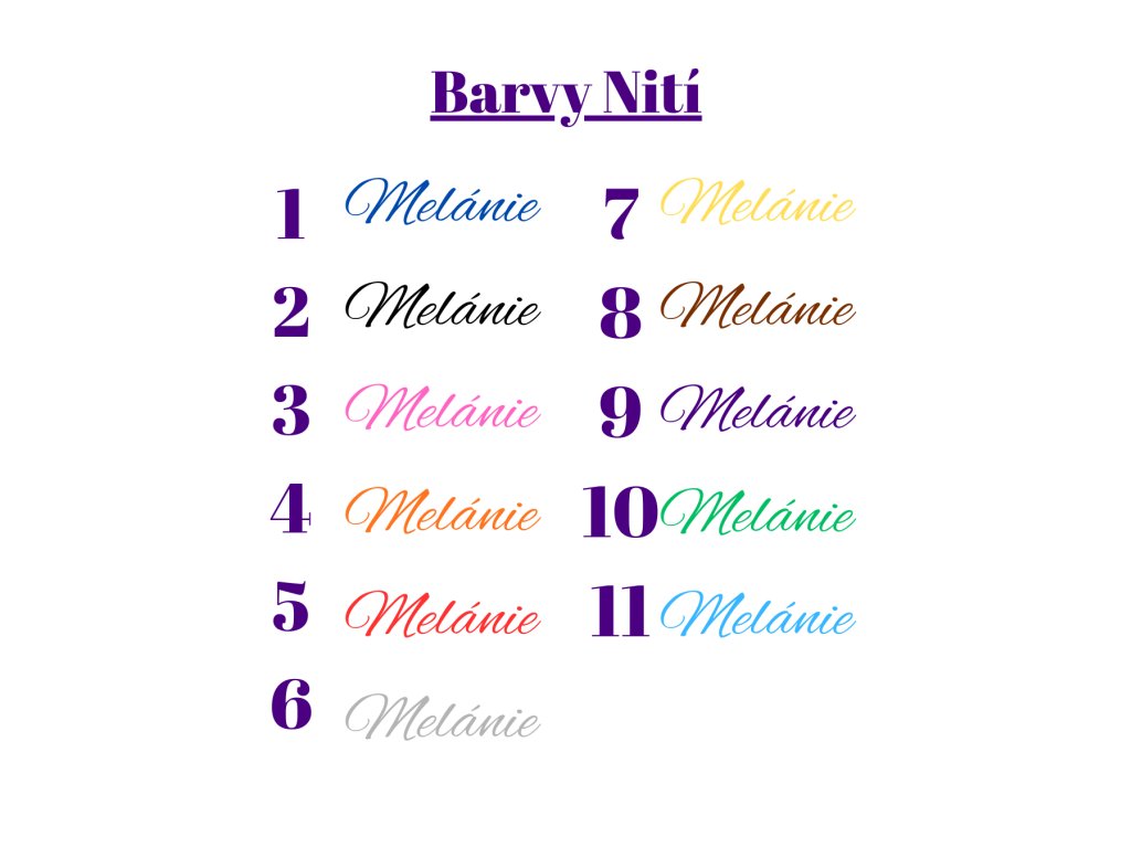 Vyšíváme podle vašeho přání – buď kompletní údaje o narození, nebo jméno s osobním vzkazem.